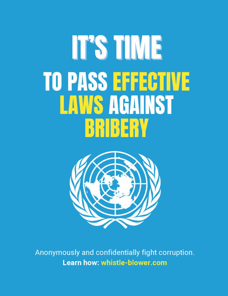 Print these posters and join us in the fight against international corruption! It’s time to pass effective laws against bribery and money laundering. Help us protect and incentivize whistleblowers who bravely report corrupt actors. Explore our website to learn more while spreading awareness to end corruption today.