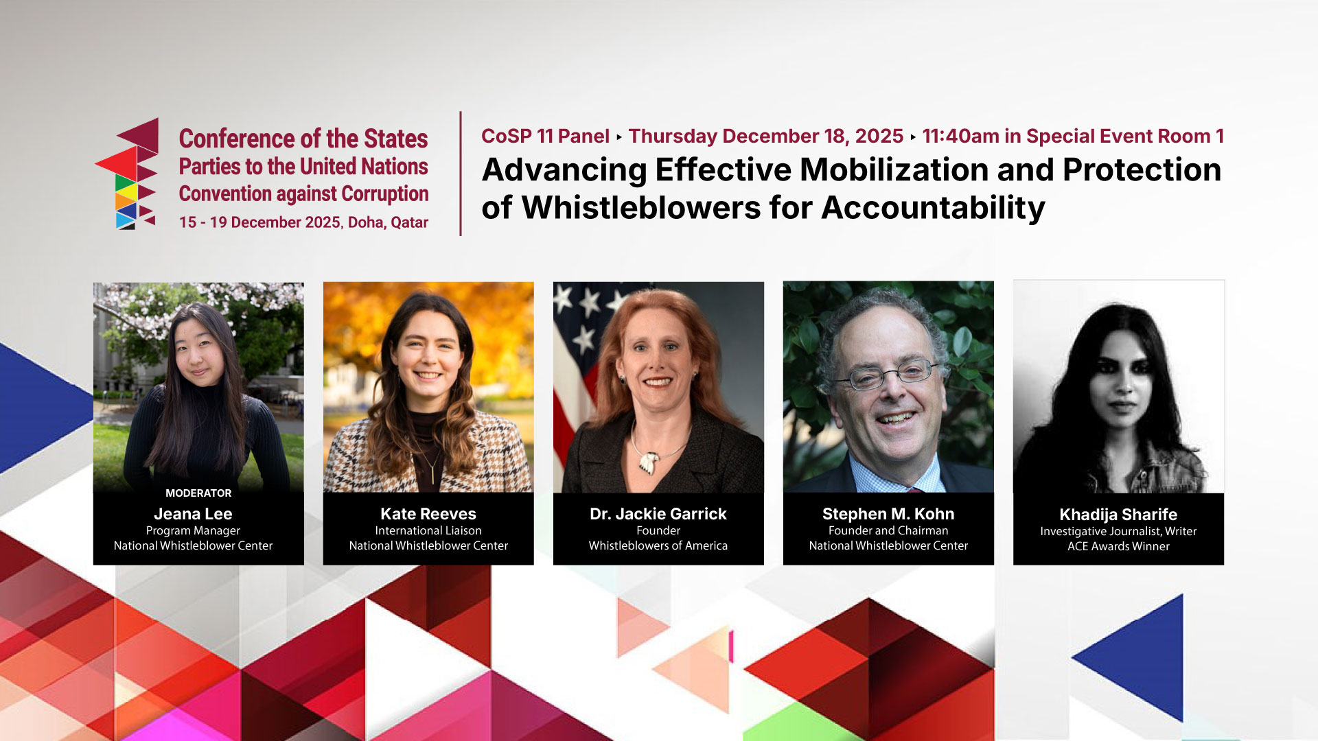 Jeana Lee is the Program Manager at the National Whistleblower Center and is in charge of the training and educational programing for International Whistleblower Advocates. Prior to her role as Program Manager, Jeana was a Communications Intern at the White House Council on Environmental Quality (CEQ), where she helped communicate the Administration’s climate change agenda to the public. She has also interned at Congress and the U.S. Environmental Protection Agency. Jeana graduated with the Highest Distinction in General Scholarship at UC Berkeley, earning a degree in Political Science and a minor in Journalism.