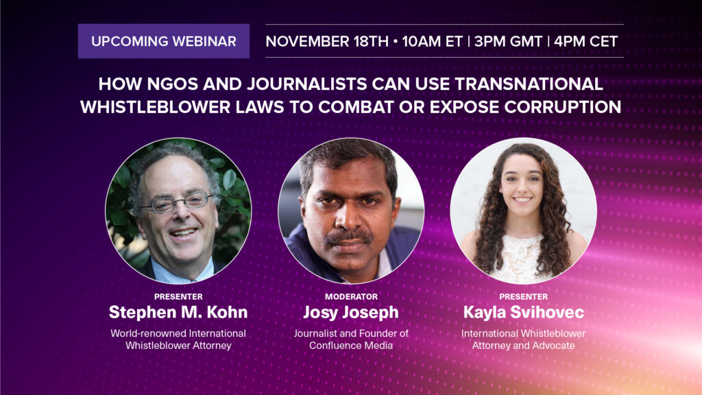 Our advocates have given numerous U.S. sponsored seminars and presentations on topics related to international whistleblowing and anti-corruption, and has organized numerous educational programs around the world.